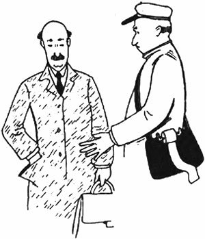ο εισπράκτορας κύριος Επαμεινώντας: Σε σάς το λέω, σε ποιόν άλλον; Όλοι οι άλλοι έχουν το εισιτήριο, μόνο εσείς δεν έχετε.