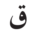 Буква ق соединяется в обе стороны и имеет четыре графические формы (см. справа налево):