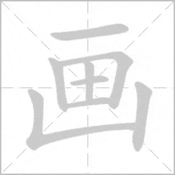 | 画 | = | Гор. черта + 田 | + | 凵 (вместилище) |