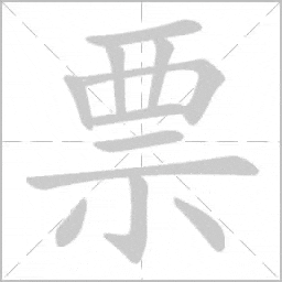 | 票 | = | 覀 (покрывать, накрывать) + 二 + 小 | ||