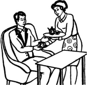 — Хорошо, посидите. Я пойду позову его (叫他).