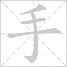 Обратите внимание: 手 пишется в левой части иероглифов как 扌.
