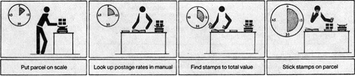 Tetsuo shows a series of colour slides, showing what happens in a post office with conventional weighing machines.