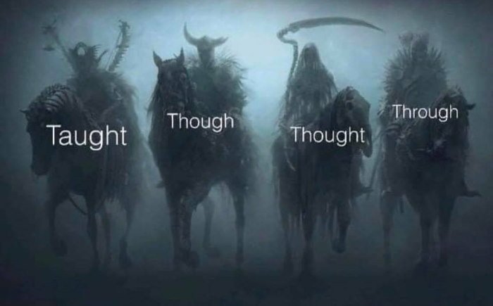 taught /tɔːt/ прош. вр. и прич. II от teach