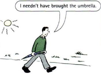 He needn’t have taken the umbrella = Он взял зонт, но в этом не было необходимости.