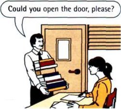 - You’re carrying a lot of things. You can’t open the door yourself. There’s a man standing near the door. You say to him: