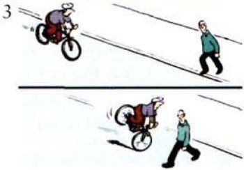 I (cycle) home yesterday when a man (step) out into the road in front of me. I (go) quite fast, but luckily I (manage) to stop in time and (not / hit) him.
