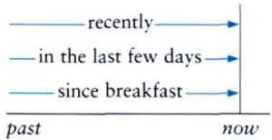 В следующих примерах тоже говорят о периоде времени, который продолжается до текущего момента (recently / in the last few days / so far / since breakfast и др.):