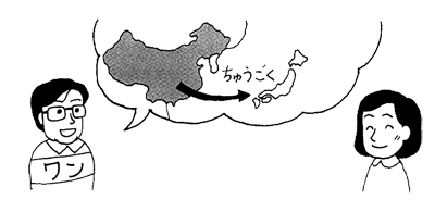 A: 初めまして、ワンです。中国から来ました。どうぞよろしく。