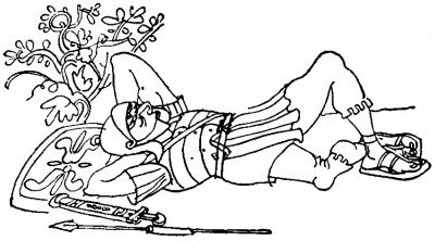 c) Ubi miles iacet? — Miles humi iacet, sed iam humo surgit.