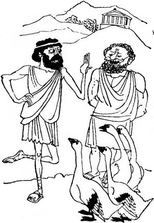Lacedaemŏne1 peregrīnus quidam altĕro pede2 stans ad virum Lacedaemonium quendam: «Tu tantum tempŏris, quantum ego, pede uno stare non possis». Cui Lacedaemonius: «Recte quidem; sed ex anserĭbus nullus est, qui altĕro pede stare non possit3».