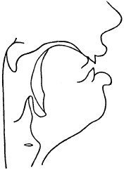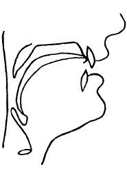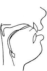 1. Буквы ą и ę служат для обозначения носовых гласных о и э. Произношению этих звуков надо учиться следующим образом: нужно подготовиться к произношению сочетаний [он], [эн], не давая кончику языка упереться в верхние зубы. Этого лучше всего достигнуть, одновременно придерживая чем-нибудь (например, специальной лопаткой) кончик языка. В результате неносовые о, э получат носовой резонанс, так как для струи воздуха открыт вход в носовую полость. Этот резонанс ни в коем случае не должен получить звучания согласного н, поэтому нельзя допустить, чтобы кончик языка прикасался к верхним зубам. Язык должен быть опущен, лежать за нижними зубами. Для примера сравните положение органов речи при произношении следующих звуков.