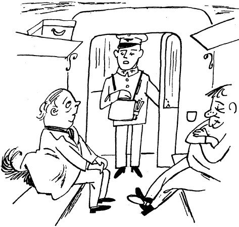 | 11. Włodek: | — | Nie, pospiesznym. Pociąg brzeski zatrzymuje się tylko na dużych stacjach i idzie tak samo szybko, jak pociąg berliński. Jechaliśmy wagonem sypialnym. Jedliśmy w wagonie restauracyjnym. Poza tym w Brześciu jest bardzo wygodne połączenie do Warszawy. | ![]() |