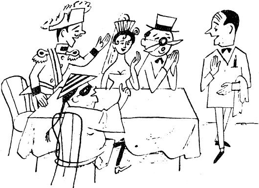 | 33. | — | Widzicie, podaje tamtym państwu, a przecież oni przyszli znacznie później niż my. | ![]() |