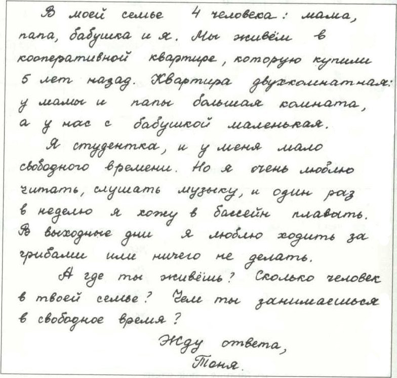 В конце своего письма Тоня задала несколько вопросов. Как бы вы на них ответили?