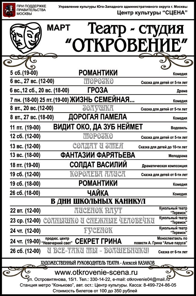 Вот некоторые из афиш, которые вы можете увидеть в театрах и кинотеатрах России. Знаете ли вы произведения, которые на них рекламируются?