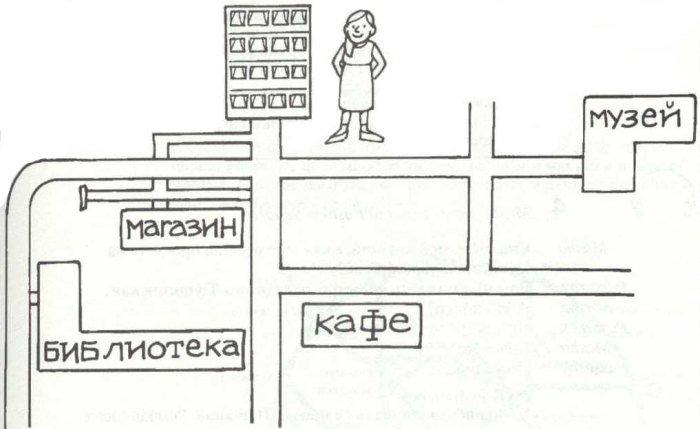 1. Нина все еще находит дорогу в новом районе. От ее дома ей дали указания, как добраться до разных мест. В аудио записи вы услышите эти указания, но не сами места! Следуйте инструкциям каждый раз, а затем посмотрите, сможете ли вы завершить вопросы, которые она задала.