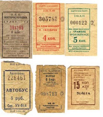 В метро есть специальные барьеры, которые пропускают вас только после того, как вы положите деньги. А вот для проезда в троллейбусах, трамваях или автобусах вам понадобятся билеты (раньше это были: талоны или, более просторечно, талончики). Эти маленькие билетики можно приобрести у кондуктора в трамвае / автобусе / троллейбусе - он (она) подойдет к вам или за вами :) . Те, кто часто пользуется общественным транспортом, покупают более экономичный и удобный: единый, a travel pass valid for one month (проездной, действительный в течение месяца).