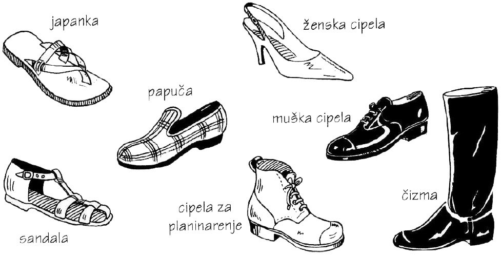 omot ‘упаковка, обёртка’; biblioteka ‘библиотека’; naslov ‘заглавие, заголовок’; knjižara; pisac (род. п. pisca) ‘писатель’; bestseler ‘бестселлер’; poglavlje ‘глава (книги)’