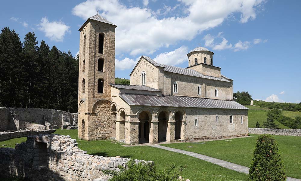 После двадесе́так мину́та су били ван града на путу према бр́дима где се налази манастир.