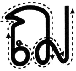 За исключением буквы ญ /й/, все низкие согласные пишутся одной чертой. Начните с позиции, отмеченной ❶. Мы уже практиковали пять согласных финалей в уроке 4. Напишите каждую букву в тетради около 20 раз.